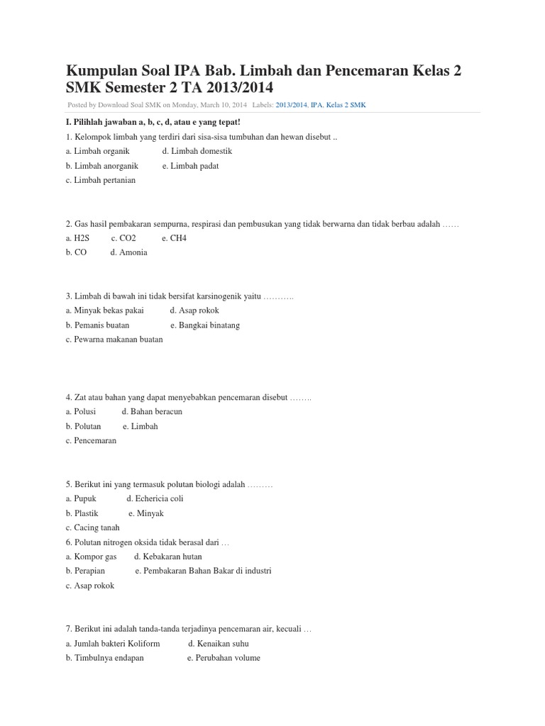 / Soal Dan Jawaban Ipa Kelas 10 Semester 2 Tentang Limbah / Soal Ipa Smk Kelas X Materi Limbah Jawabanku Id : Berikut ini adalah contoh latihan soal uts ipa kelas 6 semester 2.